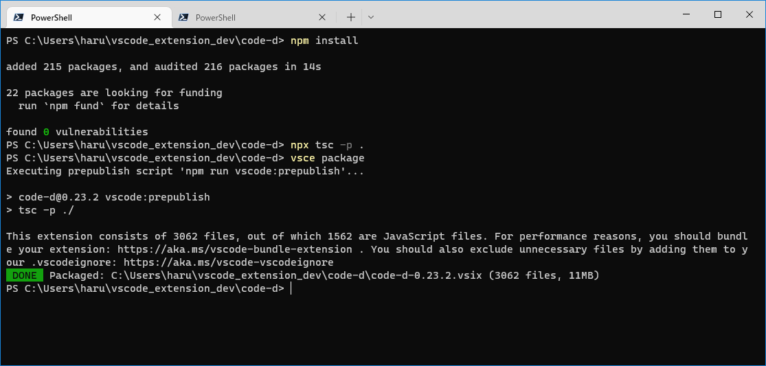 vscode に拡張機能を読み込ませるために、公式サイトに書かれていない手順を追加で実行し、パッケージ化する。